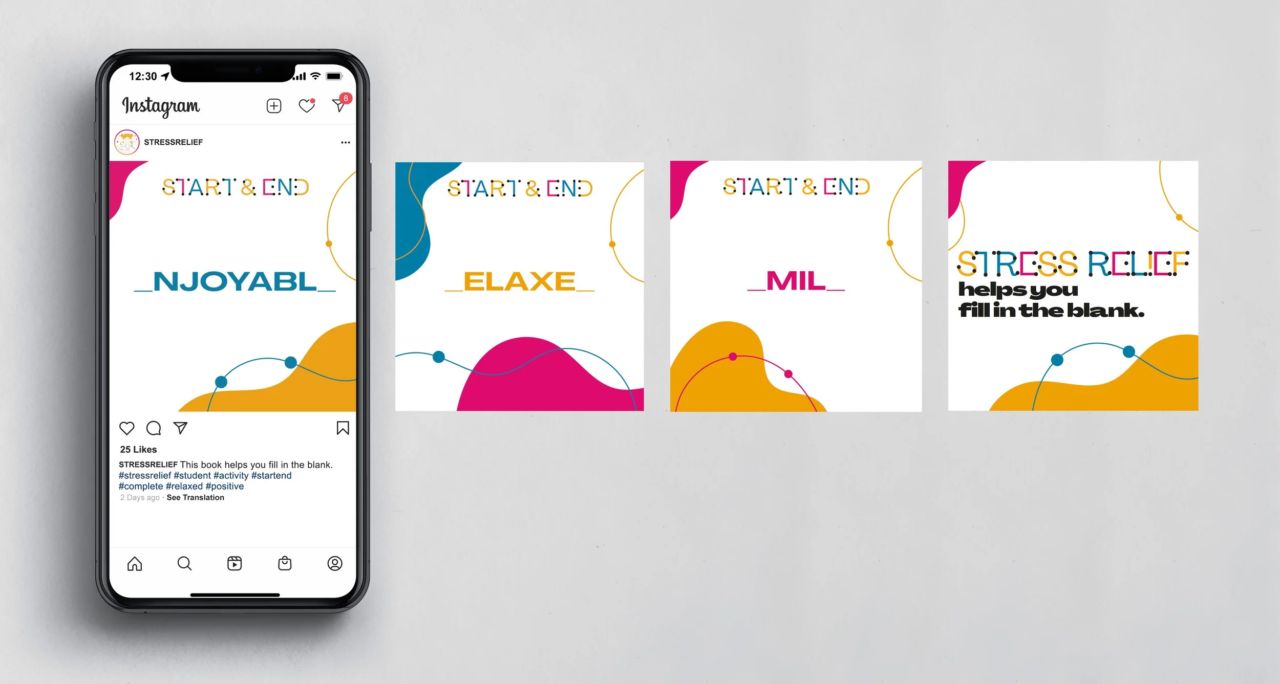 The designs are intuitive and purpose-driven, allowing users to easily navigate the content while understanding its role in promoting relaxation and well-being. By connecting digital platforms with the activity book's mission, the campaign creates a cohesive and engaging experience for students.